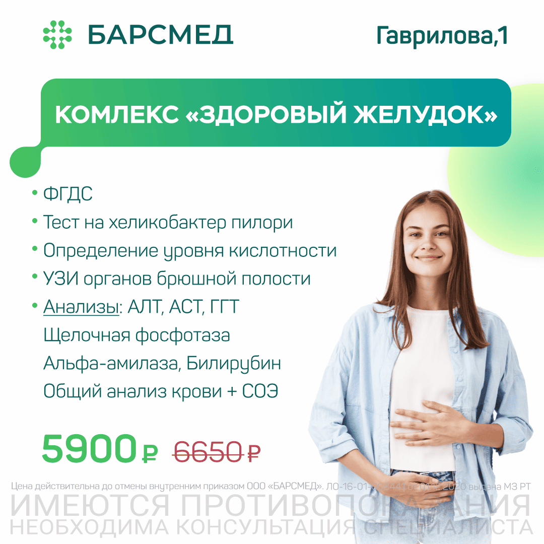 Комплекс включает гастроскопию, ультразвуковое исследование и расширенную панель анализов, которые помогают выявить гастрит, нарушения кислотности, воспалительные процессы и инфекцию хеликобактер пилори. Такая диагностика обеспечивает полное представление о состоянии органов желудочно-кишечного тракта и помогает своевременно начать лечение.
